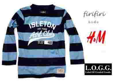 H&M LOGG bluzka paski WELUROWY NADRUK 10-12 L