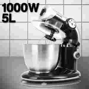 Kompletny zestaw z 5 litrową miską stalową i 3 dodatkowymi akcesoriami umożliwiającymi mieszanie i ugniatanie ciast.