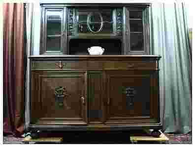 Witamy Państwa. Na tej stronie nasz sklep Histor-Pol oferuje do sprzedaży wyjątkowy, antyczny piękny kredens dębowy. Dąb ciemny,kolor palisander. Mebel wyśmienity o wspaniałym kształcie i wyglądzie. Dolna część mebla to komoda dwudrzwiowa (wewnątrz półka) i szuflady. Góra to witrynka z trzema szafkami z fazowanymi szybami, które sprawiają,że mebel prezentuje się wspaniale i niepowtarzalnie. Całość zdobiona bogatą i piękną snycerką. Kredens o wyjątkowej formie i urodzie. Z pewnością zachwyci oko prawdziwego konesera antyków. Mebel oryginalny z początku XIX wieku, godny polecenia. Kredens zaprezentowany na licznych zdjęciach poniżej. Wymiary: wysokość-206cm wysokość do blatu-110cm długość-181cm