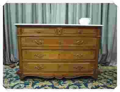Komoda posiada blat z białego marmuru.