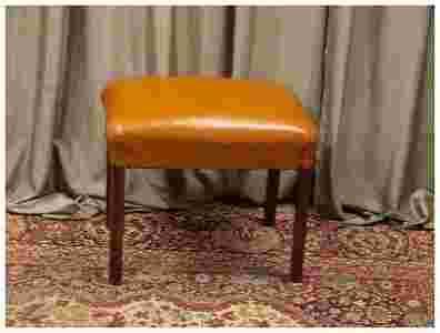 Puf tapicerowane rudą skórą stabilny mocny nosi minimalne ślady użytkowania , nóżki mocne z drewna dębowego