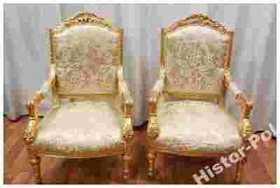 Fotel antyczny, bardzo bogato rzeźbiony,w kolorze starego złota.