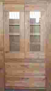 witryna, kredens z litego drewna(Orzech)Piękna struktura drewna(widoczne sęki,słoje) Para szklanych otwieranych drzwi,szklane półki oraz dwie szuflady z samozamykaczami. Cała witryna jest podświetlana. Bardzo elegancki mebel.