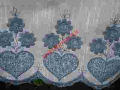 Haftowana na niebiesko tkanina serduszka
