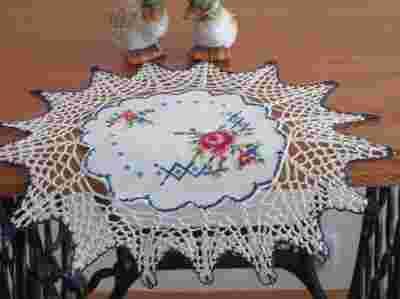 HAFTOWANA SERWETKA w SZYDEŁKOWEJ KORONCE śred:38cm
