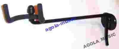 Opis haka: - kolor czarny - malowany proszkowo - zaletą tego haka jest to, że umieszczoną na nim gitarę można ustawić pod dowolnym kontem w pozycji poziomej - widełki pokryte są miękką otuliną dzięki czemu nie ma zarysowań ani odgnieceń na gryfie gitary - konstrukcja haka daje pewność, że gitara samoistnie nie zsunie się z niego - końcówki haka posiadają miękkie zatyczki zapobiegające porysowaniu gryfu przy zakładaniu gitary na hak - długość haka 20 cm - średnica wewnętrzna haka 5,5 cm