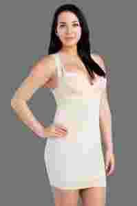 Bielizna podnosi pośladki, modeluje biodra, uda oraz talię, spłaszcza brzuch i równocześnie redukuje poczucie nadmiernego ciepła podczas noszenia dzięki zastosowaniu nowoczesnych mikrowłókien, które szybko odprowadzają wilgoć oraz nadmiar ciepła ze skóry. Dzięki procesowi szybkiego odprowadzania potu kształtuje się komfortowy mikroklimat. Modele bielizny spełniają dwie funkcje: profilują oraz dają optymalny poziom przewiewności. Powietrze dochodzi do skóry i wzmaga proces skutecznego odprowadzania potu. Halka została wykonana w technologi bezszwowej z wykorzystaniem mikrowłókna z jonami srebra, które skutecznie niwelują rozwój bakterii na skórze. Proces działania ochrony antybakteryjnej jest trwały; jony srebra nie wypierają się - gdyż są wprowadzone w sam rdzeń włókna. Jest to najskuteczniejsza ochrona antybakteryjna dostępna aktualnie na rynku. Trwała świeżość nawet podczas intensywnego użytkowania. Zastosowaliśmy taśmę silikonową w dolnym pasie halki w celu zapobiegania podchodzeniu halki ku górze. Technologia bezszwowa pozwala na osiągnięcie jeszcze jednego ważnego efektu: bielizna nie odznacza się pod ubraniem. Odpowiednia kompresja dzianiny powoduje przyleganie bielizny do sylwetki, kształtowanie poprawnej postawy poprzez odciąganie barków do tyłu oraz podciąganie pośladków do góry.