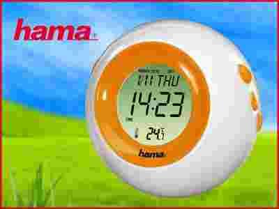 Termometr HAMA TC-300 z wyświetlaczem LCD, wskazuje temperaturę, czas, datę i dzień tygodnia