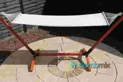 Hamak ogrodowy PARADISE ECRU to wysokiej jakości produkt wykonany z najwyższej klasy materiałów. Hamak został wzmocniony usztywniającym drążkiem wykonanym z drewna, co dodaje mu stabilności oraz ułatwia wchodzenie i wychodzenie z hamaka. W zestawie znajduje się hamak, na innych naszych aukcjach istnieje możliwość zakupu hamaka w komplecie ze stelażem.