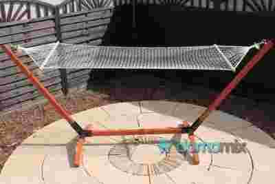 Hamak ogrodowy PARADISE sznurki to wysokiej jakości produkt wykonany z najwyższej klasy materiałów. Hamak został wzmocniony usztywniającym drążkiem wykonanym z drewna, co dodaje mu stabilności oraz ułatwia wchodzenie i wychodzenie z hamaka. W zestawie znajduje się hamak, na innych naszych aukcjach istnieje możliwość zakupu hamaka w komplecie ze stelażem.