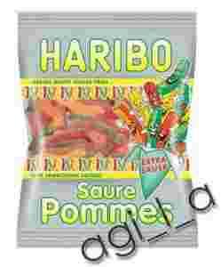 HARIBO SAURE POMMES to pyszne owocowe żelki w kształcie frytek obsypane kwaśną posypką.
