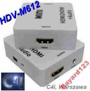 Urządzenie HDV-M612, służy do konwersji sygnałów cyfrowych wysokiej rozdzielczości HDMI na sygnał analogowy audio stereo, jednocześnie posiada także wyjście HDMI na wyświetlacz. Na wyjściu 3.5mm można podłączyć słuchawki lub wzmacniacz.