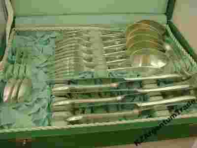 Na sprzedaż komplet sztućcy platerowanych srebrem (MET 90 - 36 mikronów) HEFRA, wzór angielski wraz z pudelkiem. Pudełko jest na 24 elementy (łyżki, łyżeczki, noże, widelce). Łyżeczki do kawy i widelczyki do ciasta były dokupywane oddzielnie (w pudelku nie ma przeznaczonego na nie miejsca) - łącznie 36 elementów. Stan oceniamy na bdb. Przedmiot używany sporadycznie. Brak ubytków srebrzenia. Z malej odległości widać na przedmiotach drobne ryski powstałe na skutek czyszczenia. Na ostrzach trzech noży przebarwienia. Cena sklepowa nowego zestawu 24 elementy to ok 1450 pln. Wraz z dodatkowymi rzeczami to ok 1700 pln. U nas licytacja od 649 pln. Oczywiście dołączamy paragon lub na życzenie fakturę VAT.