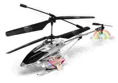 Model latający helikopter sterowany radiem. Ciąg zapewniają dwa silniki o dużej wydajności oraz jeden silnik ogonowy pełniącym funkcje kierunku (tył przód). Źródłem zasilania jest akumulatorek litowo-polimerowy, przez co uzyskano bardzo małą wagę i krótki czas ładowania. Model nadaje się do lotu w pomieszczeniach zamkniętych natomiast na zewnątrz przy bezwietrznej pogodzie. Natomiast w przeciwieństwie do modeli sterowanych torem podczerwieni może działać wyśmienicie w pełnym słońcu. Jest on dodatkowo wyposażony w diody świecące, które na pewno uatrakcyjnią wieczorne oblatywanie. Ładowanie modelu odbywa się za pomocą dołączonej ładowarki sieciowej.Model jest duży, ma metalową konstrukcję i kolorowe migające diody.