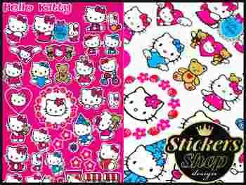 Przedmiotem aukcji jest zestaw naklejek: HELLO KITTY. Zestaw składa się z 32 elementów. Naklejki są drukowane na białej folii samoprzylepnej. Wydruk jest odporny na wodę i uv. Każda z naklejek jest wycięta po obrysie. Rozmiar arkusza z naklejkami wynosi: 50x30cm.