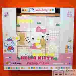Dla małych fanów Hello Kitty oferujemy sześcienne klocki renomowanej firmy Eichhorn. 9 sześciennych klocków o wymiarach 4 na 4 cm tworzy sześć kolorowych obrazków 12 na 12 cm. W komplecie drewniana podkładka, na której łatwiej będzie się układać. Wymiary opakowania 19 na 17 na 5 cm.