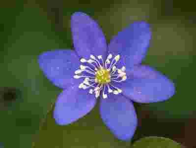 Niebiesko-fioletowe kwiaty pojawiają się wczesną wiosną na szypułkach wysokości 10 cm, zanim rozwiną się liście. Kwitnie od marca do maja. Pojedyncze kwiaty podparte są trzema niewielkimi, złączonymi listkami tworzącymi pozorny kielich. Listki te nie opadają, nawet podczas dojrzewania owoców. Okwiat przeważnie złożony z 5–6 płatków, chociaż może ich być nawet 15. Kwiat ma wiele spiralnie ustawionych słupków i pręcików. Kwitnie od marca do maja. W czasie deszczowej pogody, oraz na noc kwiaty zamykają się.