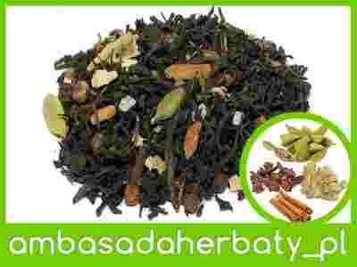 Skład: Herbata czarna, cynamon, cukier kryształ, kardamon, imbir, goździki, czarny pieprz.
