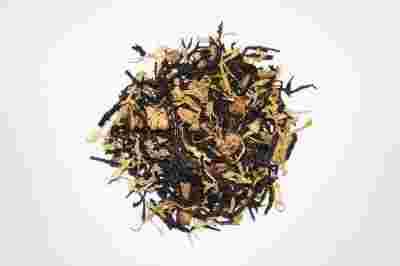 Czarna herbata liściasta, płatki kwiatu nagietka, goździk, wanilia, jabłko, gruszka, aromat.