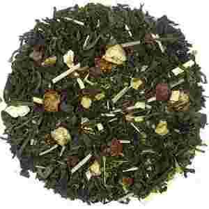 Herbata Pu Erh z dodatkiem trawy cytrynowej, dzikiej róży, mate green oraz suszonych kawałków.