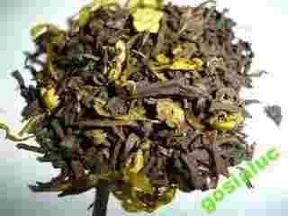 Skład: herbata Pu-Erh, kawałki cytryny, skórki pomarańczy, kwiatki bławatka, hibiskusa, kwiatki prawoślazu lekarskiego, aromat.