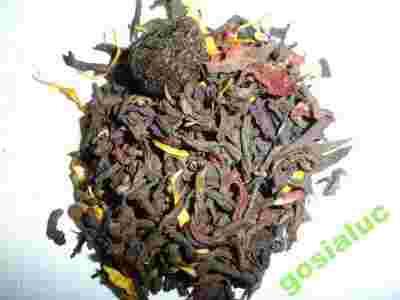 Skład: herbata Pu-Erh, wiśnie, kwiaty hibiskusa BIO, kwiatki nagietka, aromat