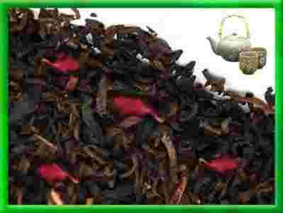 Czerwona herbata liściasta pu erh z dodatkiem wiśni o przyjemnym aromacie.