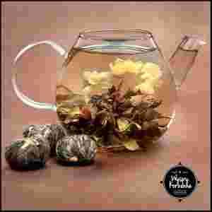 Herbaty „kwitnące” to ręcznie zwijane w kulkę herbaty białe (lub zielone) z dodatkiem kwiatów – jaśminu, chryzantemy, lilii, amarantusa, dla podkreślenia wizualnego efektu w naczyniu. Delikatne listki tej herbaty pozostawione są po ich zbiorze do podsuszenia, następnie delikatnie suszone i poddawane parze wodnej. Ten proces ułatwia osiągnięcie gładkości liści niezbędnej do ręcznego ich zwijania. Piękna artystycznie, zarazem delikatna w smaku...