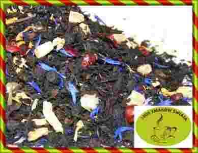 Herbata czarna o smaku owoców leśnych.