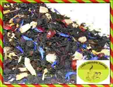 Herbata czarna o smaku owoców leśnych.