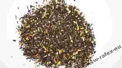 Czarna herbata liściasta z owocem truskawki,rabarbar,morela kwiatem słonecznika , o intensywnym aromacie maliny.