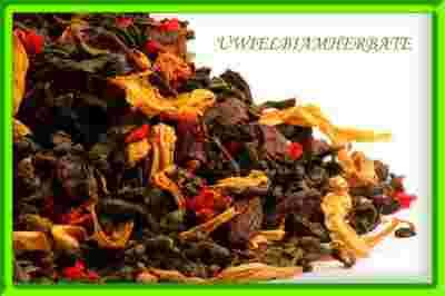 - Herbatę tą można z całą pewnością zaliczyć do specjałów. Pół fermentowana oolong formosa połączona z takimi dodatkami jak rodzynki, kwiaty granatu i słonecznika oraz kawałkami wanilii wzbogacona aromatem, tworzy niezwykle ciekawą kompozycję smakowo zapachową. Po zaparzeniu unosi się przyjemny aromat winogron, którego dopełnieniem jest smak tych owoców. Herbata w kolorze ciemno żółtym z czarnymi owocami wanilii unoszącymi się w naparze. Susz potrzebuje dużo miejsca do zaparzenia. Polecam. Zapraszam do zapoznania się z pozostałymi herbatami z kategorii: TURKUSOWE !