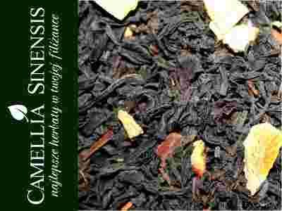 czarna herbata, skórka pomarańczowa, kawałki cynamonu, kawałki imbiru, aromaty naturalne, kawałki wanilii, składniki liofilizowane