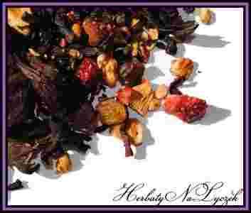 Skład: Winogrona, hibiskus, owoc czarnego bzu, czarna porzeczka, burak ćwikłowy, wiśnie, truskawki, kawałki jabłka, aromat rumowy.