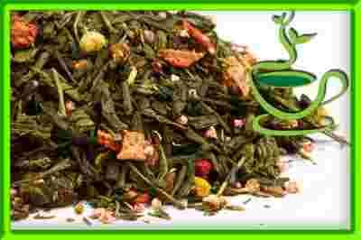 - Zielona herbata Sencha, morele (min. 7,3%), naturalny aromat, kawałki mandarynek, wanilia (min. 2,1%), kwiatki stokrotki i wrzosu, cynamon i truskawki.