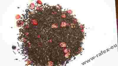 Czarna herbata liściasta o wyjątkowym smaku z dodatkiem owocu truskawki, trawy cytrynowej, owocu żurawiny i aromatu żurawinowego.