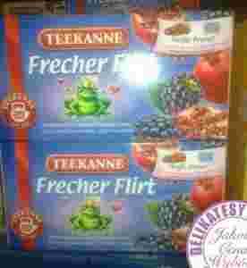 ORYGINALNĄ HERBATĘ expresową TEEKANNE NOWOŚC FRECHER FLIRT KLASYKA HERBAT OWOCOWYCH ZAWIERA 20 SASZETEK HERBATY KAŻDY PO 2,75 GRAMA NETTO TO 20 SZTUK 55g pysznej, intensywnej, aromatycznej herbaty 1 sztuka to około 200 ml napoju.