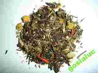 Zielone herbaty: Sweet Flower, Yunnan Green, Formosa Gunpowder, Phoenix Eyes, biała herbata Snow Buds, kwiatki osmantusa, jaśminu, chryzantemy, liście kari (=curry leaf= Murraya koenigii), kardamon, kawałki drzewa sandałowego, kurkuma, aromat.