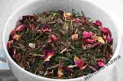 Zielona herbata Sencha z dodatkiem papaji kandyzowanej, płatków róży i aromatu.
