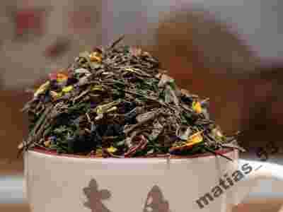 Aromatyczna herbata zielona o nucie różano - truskawkowej.