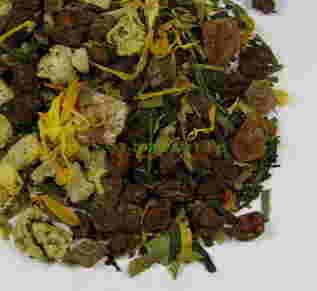 Składniki: zielona herbata Sencha, kawałeczki aloesu, rokitnik zwyczajny (zioło stosowane w staromongolskiej i tybetańskiej medycynie naturalnej jako remedium na choroby żołądka, zawiera dużo witamin C, wit. B i kwasu foliowego), werbena cytrynowa, kawałki cytryny, ananasa i moreli, kwiatki nagietka i ostu, aromat.