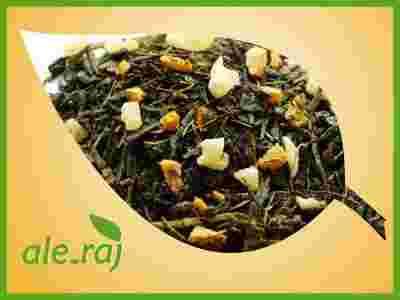 Herbata zielona typu Sencha i Gunpowder z dodatkiem cząstek ananasa kandyzowanego i brzoskwini o przepysznym aromacie sorbetu brzoskwiniowo-morelowego. Wyśmienita propozycja, gdy szukasz delikatnego smaku owoców w połączeniu z walorami zielonej herbaty.