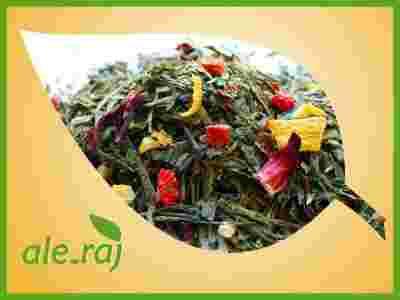 Herbata zielona typu Sencha z dodatkiem melisy, skórki dzikiej róży, hibiskusa, skórki cytryny i pomarańczy, truskawki oraz jabłka. Przyjemnie relaksuje i uspokaja. Polecana osobom, które szukają wyjątkowego smaku połączonego z właściwościami zdrowotnymi.