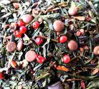 Zielona Sencha o hinduskim charakterze w skład którego wchodzą przyprawy kardamon, cynamon, imbir, czerwony pieprz oraz goździki oraz słodycze w postaci dużych kawałków pralin, czekolady oraz ziaren kakaowca.`
