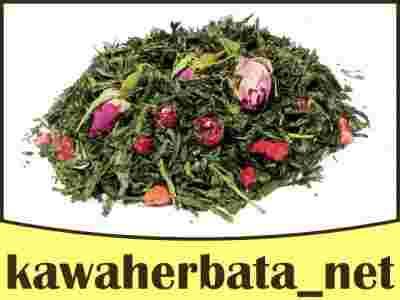 Sencha, liofilizowane truskawki i czerwona porzeczka, pączki róży, naturalny aromat.