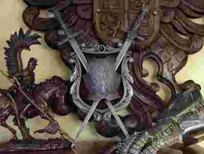 HERBOWA PANOPLIA Z NAPIERŚNIKIEM I MIECZAMI