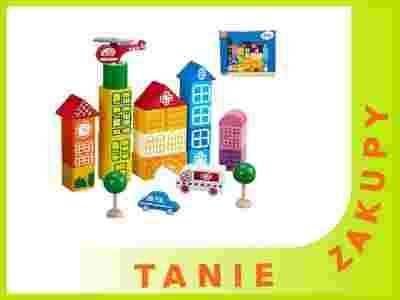 Kolorowe, 24 elementowe klocki drewniane pakowane w kartonowe pudełko z okienkiem. Dodatkowo na klockach znajduje się grafika, w postaci różych elemntów budowli (mur, okno i inne), dzieki którym dzieci moga tworzyć wizualizacje miast, zamków i innych budowli. Klocki przedstawiają podstawowe figury geometryczne, pobudzają wyobraźnię i dają nieograniczone możliwości zabawy. Dodatkowo występują klocków w postaci autek, drzewek i helikoptera.Heros to firma z ponad 100letnią tradycją, produkująca drewniane zabawki dla dzieci w postaci klocków edukacyjnych dla najmłodszych, zabawek zręcznościowych, samochodzików i kolejek oraz konstrukcyjnych zabawek do samodzielnego montażu dla starszych dzieci. Wszystkie wykonane są z wysokiej jakości twardego drewna pochodzącego z bawarskich lasów, charakteryzuje je bezpieczeństwo i solidność wykonania. Poprzez zabawę dzieci uczą się przestrzennego myślenia oraz ćwiczą umiejętności motoryczne.