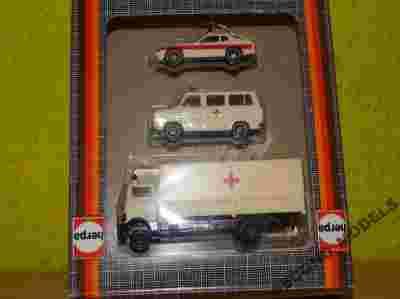 HERPA ZESTAW 3 X MERCEDES AMBULANS PORSCHE 1:87