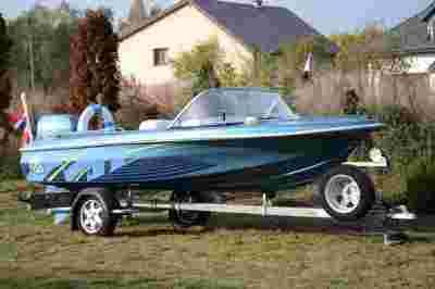 Mam do zaoferowania wyjątkową, lekką i zwinną łódź motorową Hille Malibu 450 z najmocniejszym dostępnym do niej silnikiem dwusuwowym EVINRUDE V4 o mocy 90KM. Łódź po kompleksowej renowacji według własnego projektu, która obejmowała: malowanie kadłuba w kolorze niebieski metallic + dno łodzi specjalną farbą anty-porostową; knag, relingów, drabinki, masztu holowniczego i stelaża dachy z polerowanej stali nierdzewnej; wykonanie 100 litrowego zbiornika paliwa ze stali nierdzewnej i umieszczenie go w części dziobowej łodzi; wykonanie na nowo całej tapicerki, montaż dodatkowych wskaźników (voltomierz, licznik motogodzin, wskaźnik paliwa); montaż CB radia i zestawu audio; wykonanie dodatkowych; zamykanych schowków; montaż pompy zęzowej; wykonanie miękkiego dachu bimini; projekt i wykonanie grafiki na dziobie, burtach i silniku; montaż hydrostabilizatorów; renowację i regulację silnika. Wszystko zostało przeprowadzone wiosną bieżącego roku. Łódź sprzedaję razem z silnikiem, kompletnym wyposażeniem oraz przyczepą podłodziową widoczną na zdjęciach.