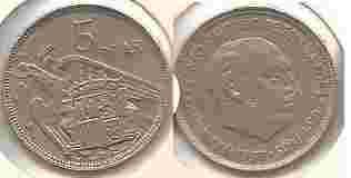 HISZPANIA 5 PTAS 1957 HOLDER